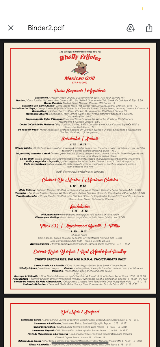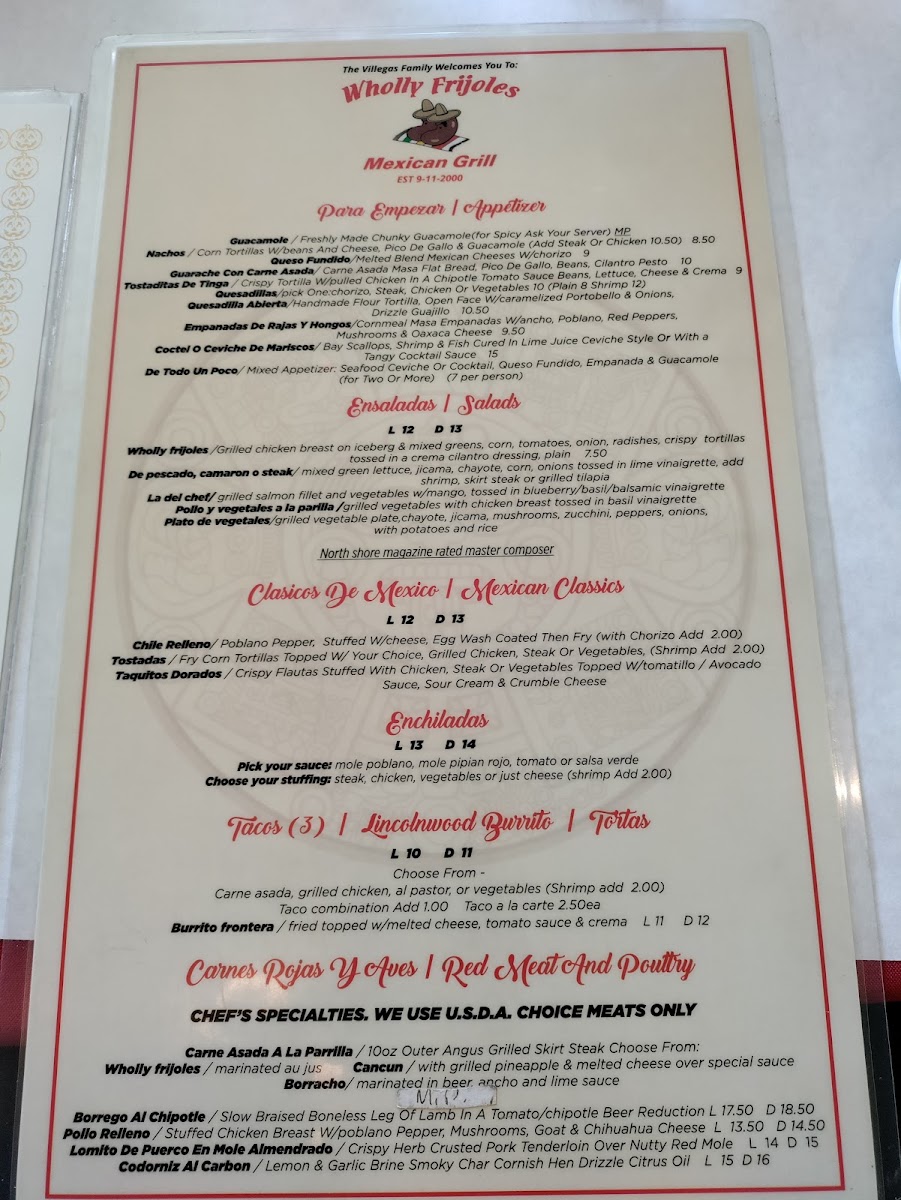 Introducing the menu at Wholly Frijoles, a hidden gem in Lincolnwood, IL, where elevated Mexican cuisine has delighted patrons for over 25 years. Nestled in a cozy strip mall, this charming spot stands out for its vibrant flavors and welcoming atmosphere.
